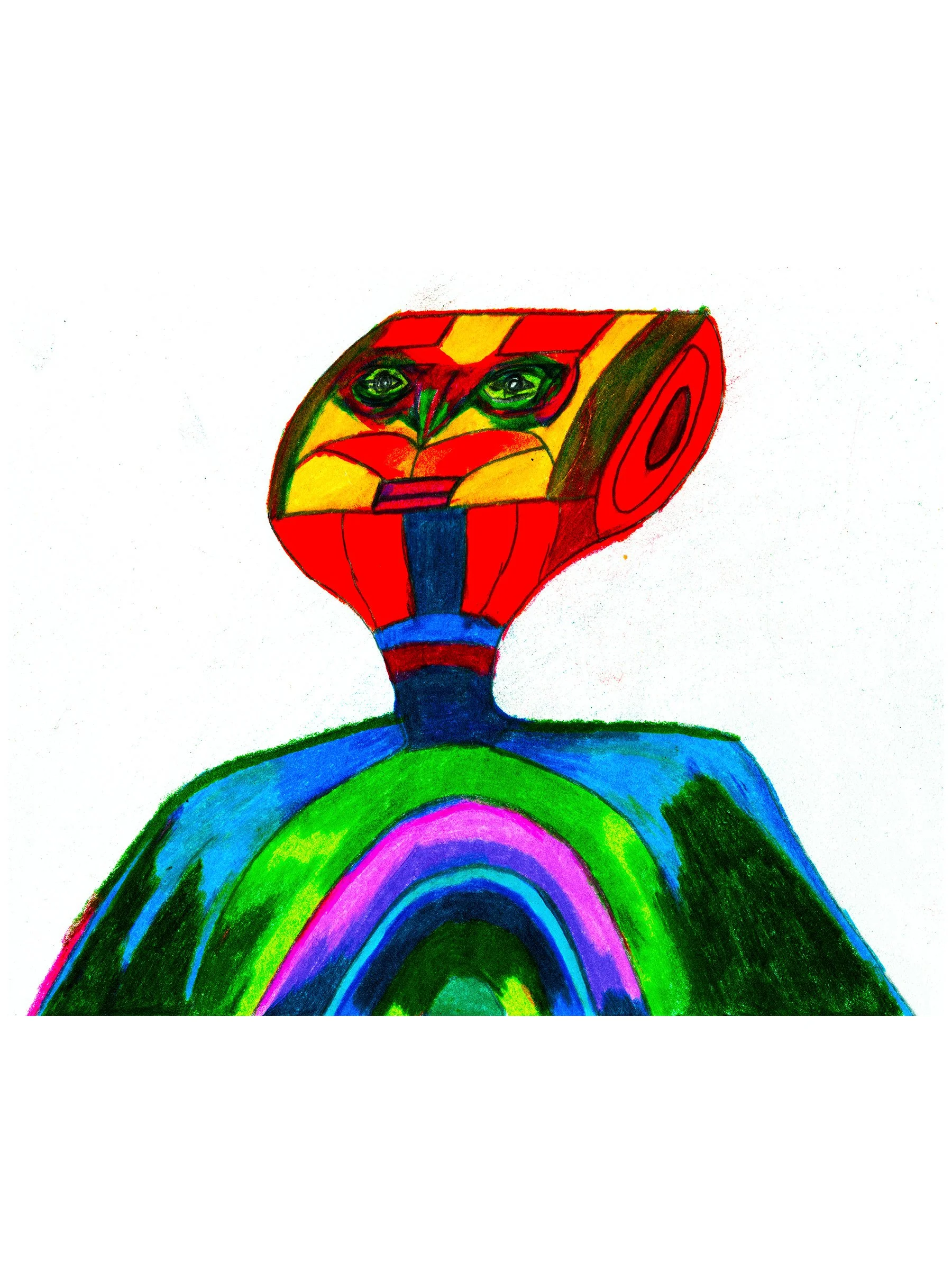 I retired to Atmos, a large exoplanet five times the size of Earth, composed primarily of Hydrogen lattice crystals, which result in a small mass and low gravity. Here I roam the vast beaches that line the liquid nitrogen sea, collecting silicon driftwood and Parea shells, which have anti-rust secretion properties. I use these high-quality pastel ochre sediment paints to “recloak,” as it were, painting my exoskin in seasonal colours to match the atmospheric conditions and weather. Recently, I was contacted by Hazmat, my old friend from Off-World Waste Disposal Inc. We intend to meet at the South Pole of Atmos to investigate the Ice-Worm Whales, a species that lives beneath the polar ice and is said to communicate through a form of poetry.